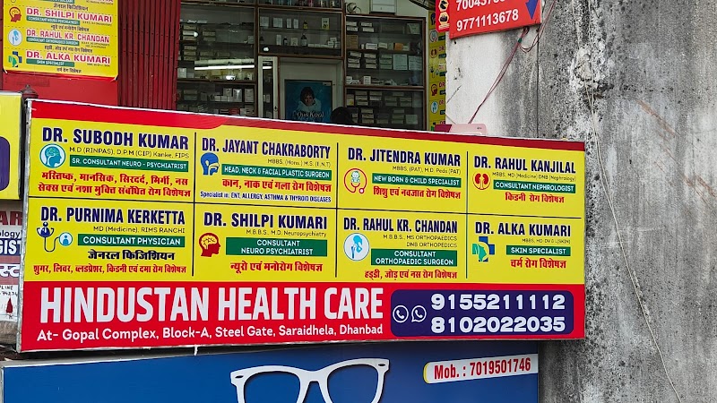 Hindustan Healthcare is a trusted healthcare facility in Saraidhella, serving the community with professional care. It offers a wide range of medical services for patients of all ages. Conveniently located in Saraidhella, it ensures accessibility for residents of Jharkhand. With modern infrastructure and a compassionate team, Hindustan Healthcare is committed to better outcomes. Address: 4&5, UG, Gopal complex, Steel Gate, Block -A, Murli Nagar, Saraidhella, Jharkhand 828127, India. Visitors often return for its consistent quality.