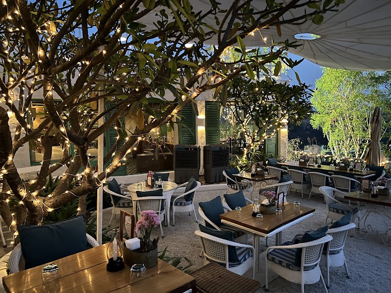 Stylish bungalow restaurant with teal & white decor, plus lake views & upscale Mediterranean fare.