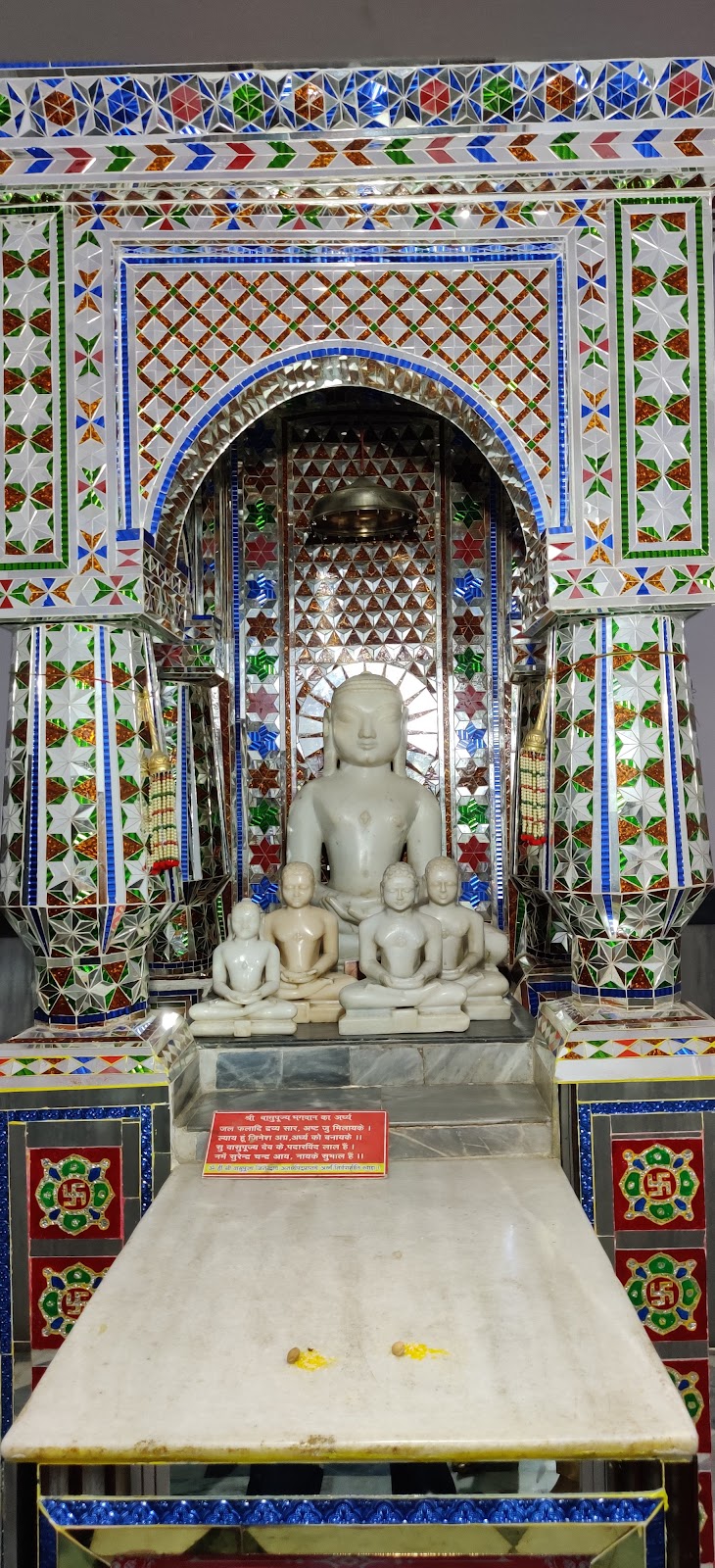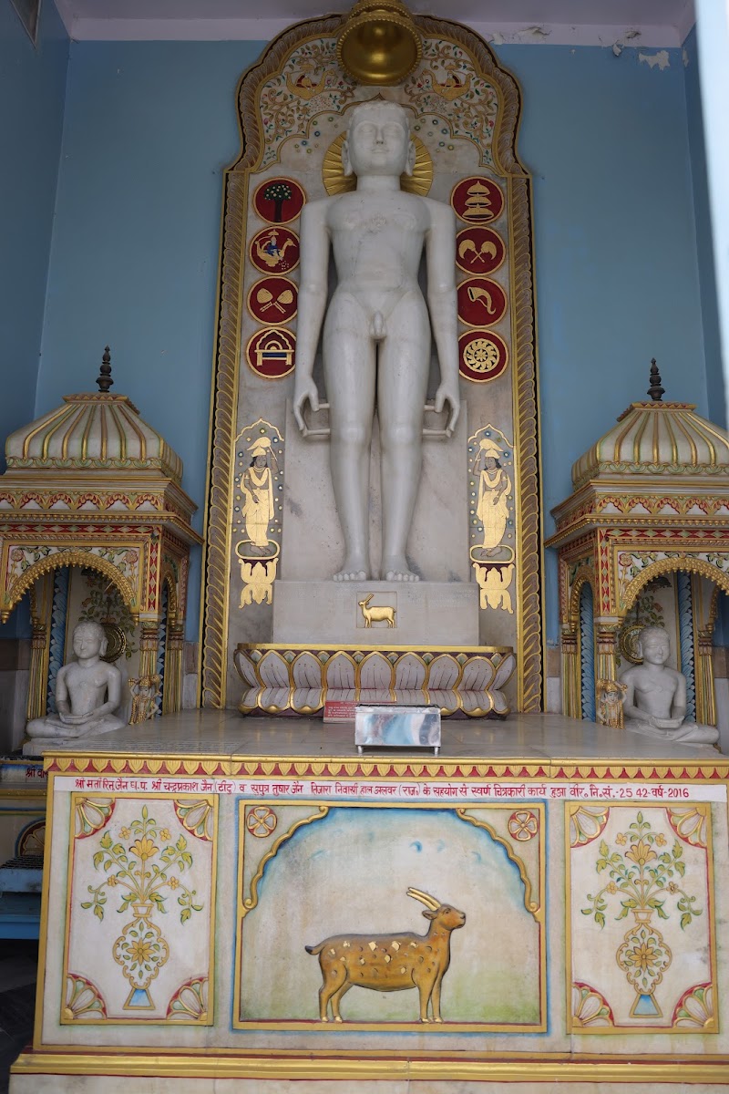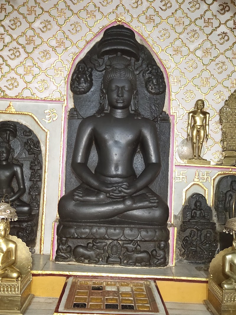 Place of worship for the Jain faith, featuring ornate architecture & traditional religious art.